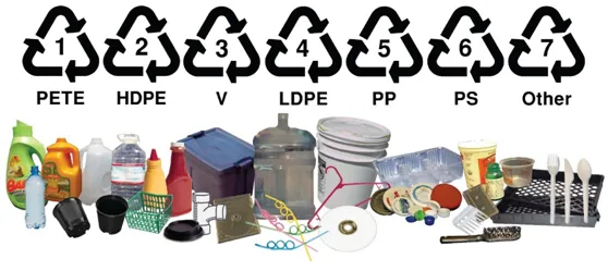 塑料回收標(biāo)志是一個(gè)三角形符號(hào),一般在塑料容器底部。三角形里邊有1~7的數(shù)字,每一個(gè)數(shù)字都代表不同的材料,如果制品是由幾種不同材料制成的,則標(biāo)示的是制品的主要的、基本的材料。